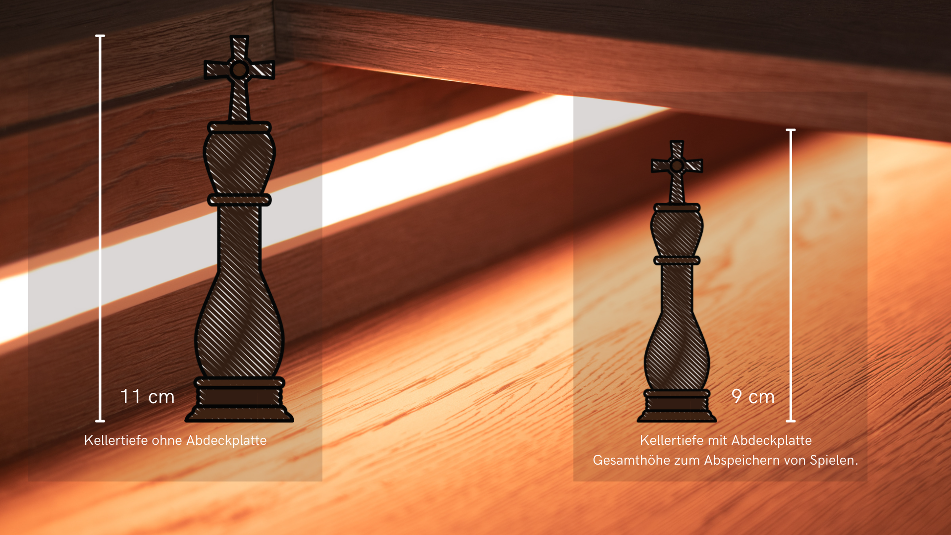 Der Thurse nimmt jede Deiner Spielwelt auf und lässt dich in diese eintauchen. Durch die erhöhte Sitzposition hast Du immer Überblick über das ganze Spielgeschehen. In seinem Keller kann der HÜNE Deine spannendsten Partien und Spiele speichern. Die Abdeckplatten machen es möglich. Sie verwandeln Deinen Spieltisch wenn nötig schnell in einen Esstisch. Öffne den Tisch wieder: Du kannst sofort weiter spielen, wann Du es möchtest oder einfach wieder eine kurze Pause in Deinen langen Schlachten und Partien einlegen.