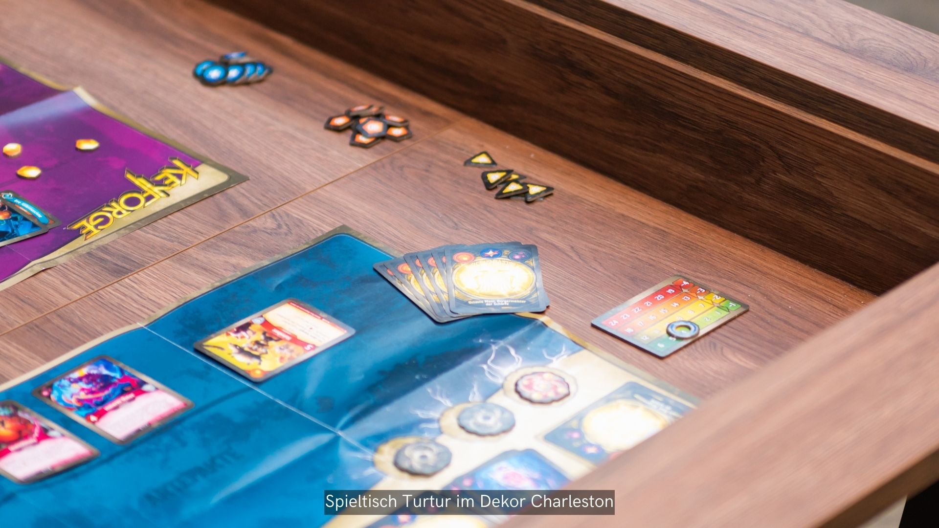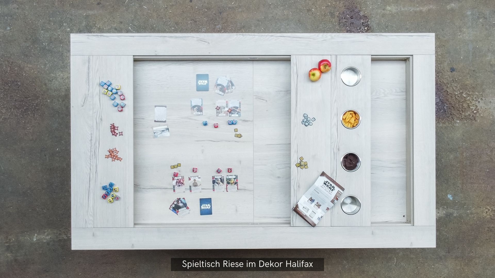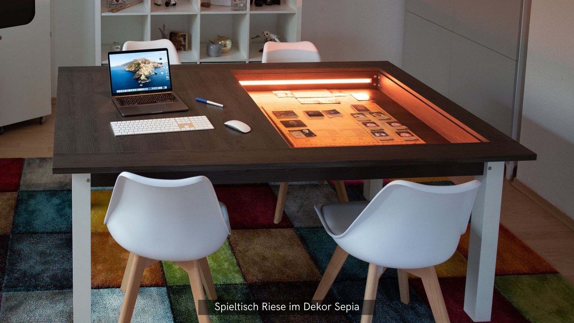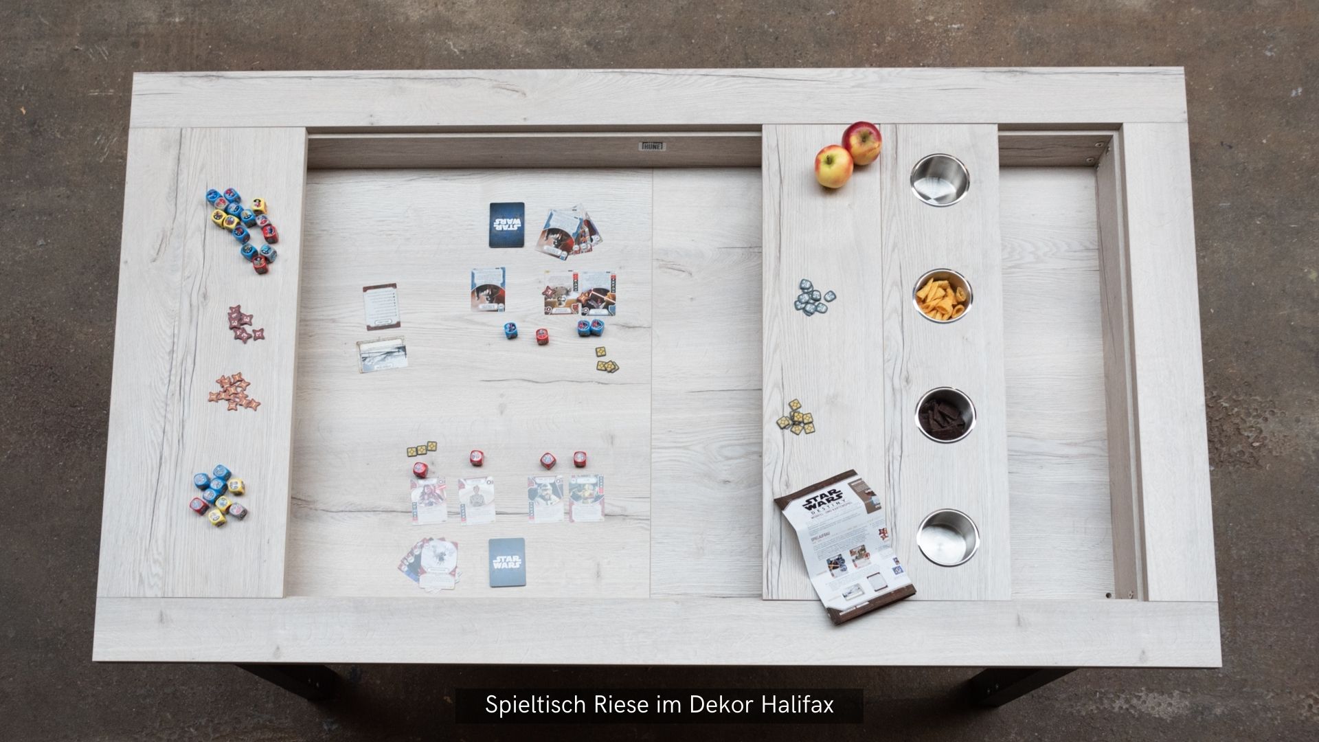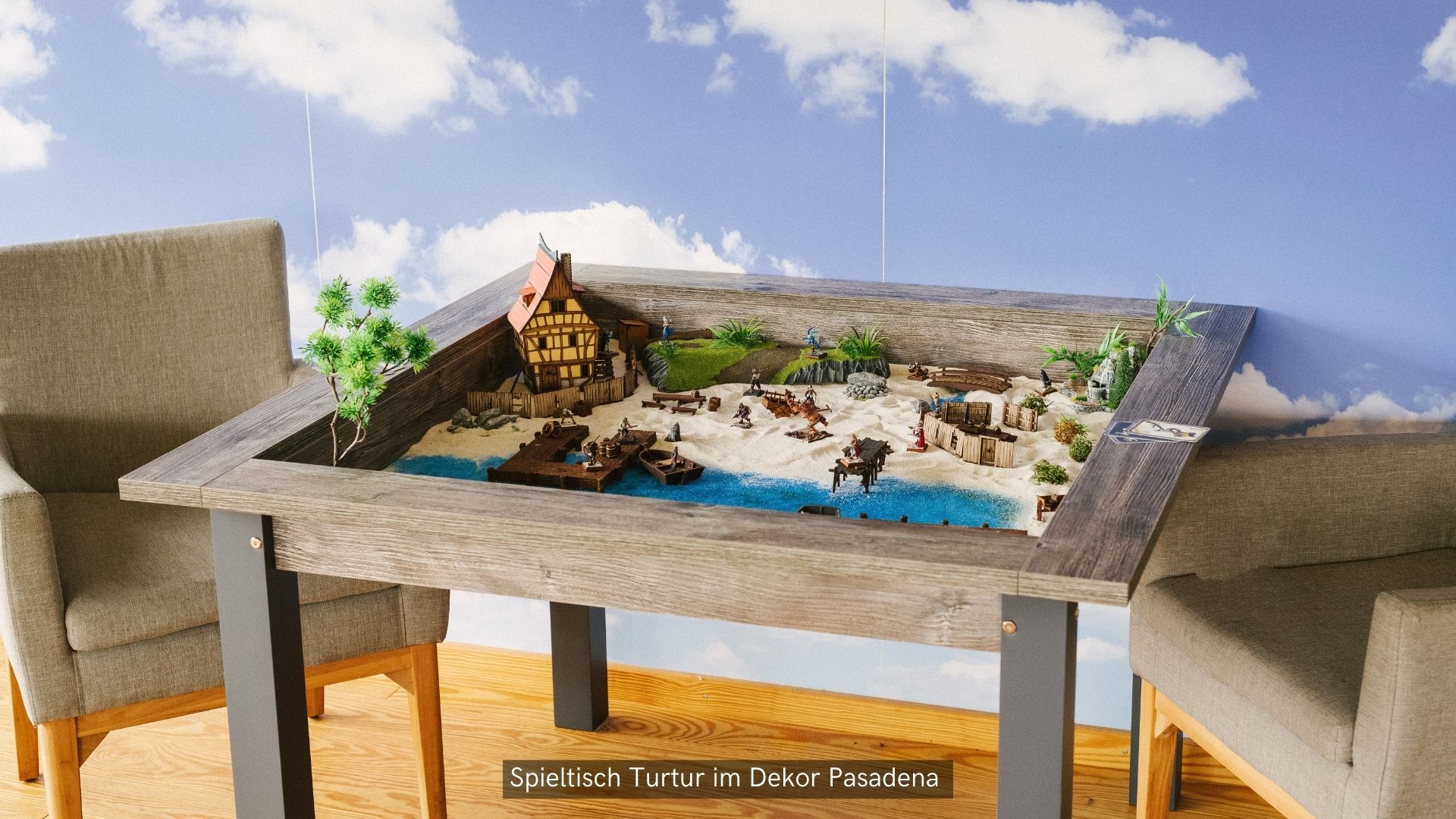 Der Riese nimmt jede Deiner Spielwelt auf und lässt dich in diese eintauchen. Durch die erhöhte Sitzposition hast Du immer einen besseren Überblick über das ganze Spielgeschehen.In seinem Keller kann Dein HÜNE Spieltisch Deine spannendsten Partien und Spiele speichern. Die Abdeckplatten machen es möglich. Sie verwandeln Deinen Spieltisch wenn nötig schnell in einen Esstisch. Öffne den Tisch wieder: Du kannst sofort weiter spielen, wann Du es möchtest oder einfach wieder eine kurze Pause in Deinen langen Schlachten und Partien einlegen.