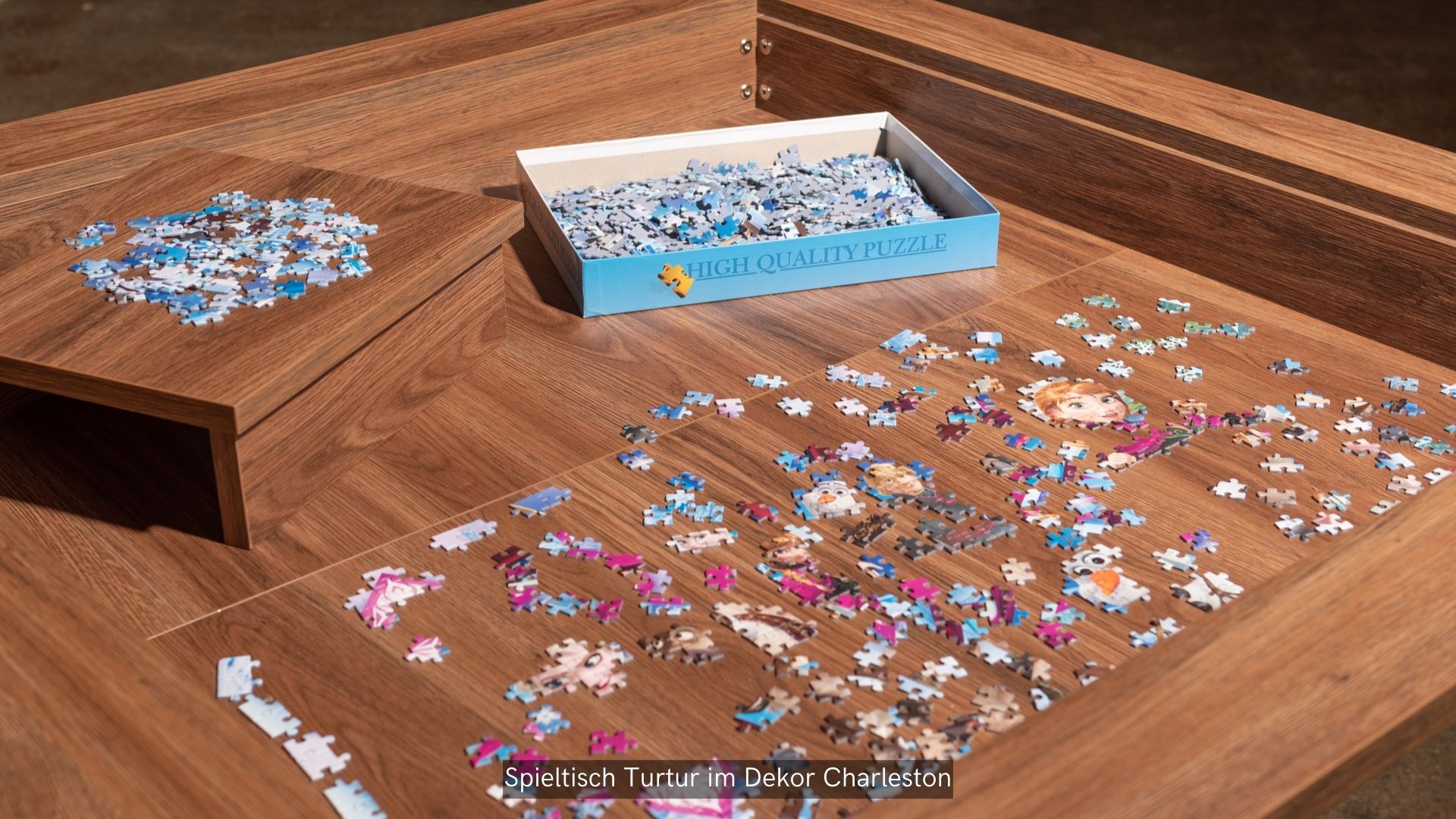 Die Idee von Deinem HÜNE Tisch: in dem abgesenkten Keller innen zeigt sich eine zweite Fläche, in der Brettspiele, Puzzles oder Spielzeug gelagert werden können.
